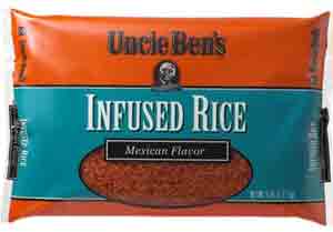 The recalled products were produced during 2013 and include: Uncle Ben’s Infused Rice Roasted Chicken Flavor in 5-pound and 25-pound bags; Uncle Ben’s Infused Rice Garlic and Butter Flavor in 5-pound bags; Uncle Ben’s Infused Rice Mexican Flavor 5-pound and 25-pound bags; Uncle Ben’s Infused Rice Pilaf in 5-pound bags; Uncle Ben’s Infused Rice Saffron Flavor in 5-pound bags and Uncle Ben’s Infused Rice Spanish Flavor in 25-pound bags.